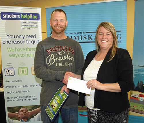 Diane Johnston Speaker Reporter TEMISKAMING SHORES – After smoking for about 20 years, why did Kyle Flaxey quit?“Mostly because of my two-and-a-half-year-old son,” said the Haileybury man.He has remained smoke-free since the first week of April.But that initial seven-day period qualified him for the Canadian Cancer Society’s