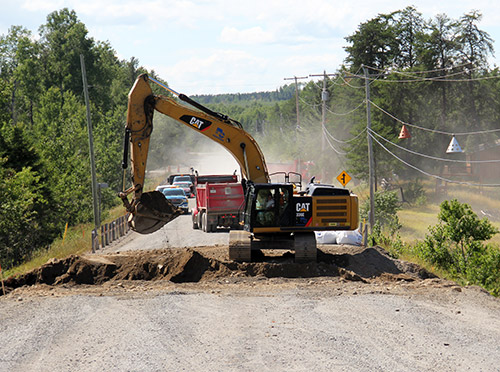 This photo is of a portion of Highway 11 B in Coleman Township, which is temporarily closed to through traffic for approximately eight consecutive days, from Monday, August 15 to Monday, August 22. Westbound traffic on Highway 11B is being detoured north through the communities of Cobalt and Haileybury,