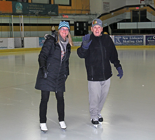 Nelly Moriarty (left) and George Fraboni each enjoyed a free public skating session at the Don Shepherdson Memorial Arena on Wednesday, March 15. Moriarty is part of a group of skaters from the Timiskaming Health Unit who skate on their lunch hour and Fraboni is a former New Liskeard