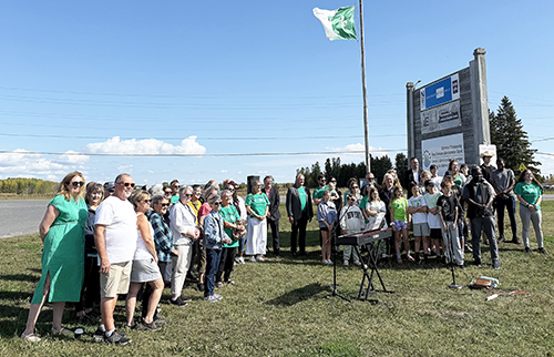 The Franco-Ontarian flag was raised on its 50th anniversary in Temiskaming Shores with approximately 70 people in attendance, including area dignitaries. (Staff photo by Darlene Wroe)
