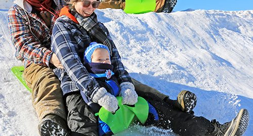A sliding hill behind the arena was the centre of attraction February 21 during the Englehart Winter Carnival with the theme “Snow Much Fun.” Noah Milks (left), Shannon Gillett …
