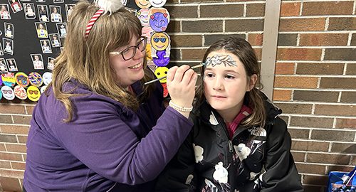 Melanie Bourgeois loaned her creative talents to the festive fun as she painted Ellie Broughton’s face during the holiday market on November 29 at Timiskaming District Secondary School in …