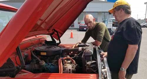There’s a story behind Nathan Evans’ 1969 Dodge D 100 Fargo. His father bought the truck in 1983 and sold it in 1991. Evans, at back, bought it back around …