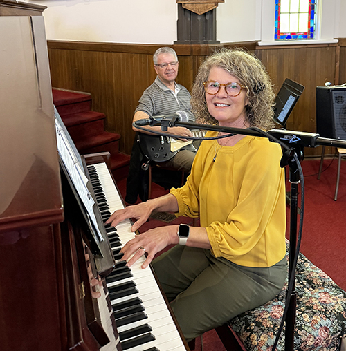 Guitarist Terry Elliott and pianist Deborah Bandy (the music director at St. Andrew’s Presbyterian) provide musical accompaniment throughout the services. (Staff photo by Darlene Wroe)