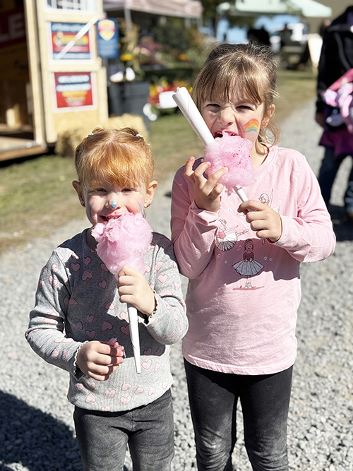 Hailey Jibb, 4, and her cousin Arizona Jibb, 6, were among the hundreds of children who enjoyed the fair-like atmosphere of the second annual Family Fun Day on the Farm Saturday at the Breault Family Farm in Harris Township. (Staff photo by Darlene Wroe)