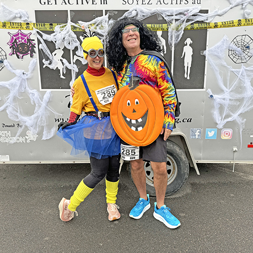 Karen Landers and Bobby Morin hoped to scare up some good times as they took part in the Get Active in Temiskaming Halloween Run/Walk’s 5km event on Saturday. Both runners finished first in their age divisions. (Staff photo by Sue Nielsen)