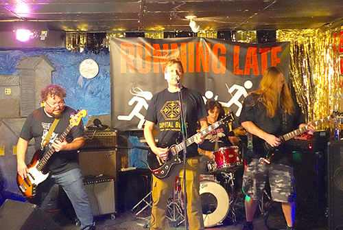 Local hard rockers Running Late will be sharing the bill with Timmins-area band Comma, and local sludge-punkers Freakazoid, during a show at the Haileybury Legion Saturday, November 29. Running Late includes, from left, bassist Dominic Lafontaine, guitarist/vocalist Nathanial Preston, guitarist Bill Hastings and drummer Eric Hutnick-Whitehead. (Supplied photo)