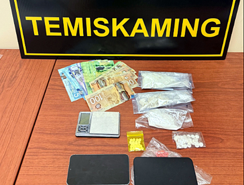 Pictured above are suspected drugs with a street value of $15,000 as well as other items seized when officers executed a search warrant at a Cobalt residence. Two people each face several charges of possession for the purpose of trafficking, and a third person was charged with possession. (OPP Photo) Drug seizure COBALT – Suspected illicit drugs with an estimated street value of $15,000 were seized and three people were charged in Cobalt last week. Temiskaming OPP say officers executed…